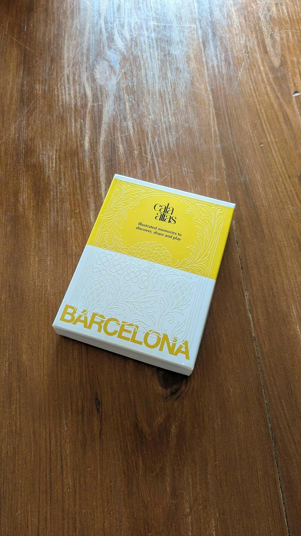 Two Cala Atlas Barcelona Story Deck boxes with embossed details on a yellow and white cover